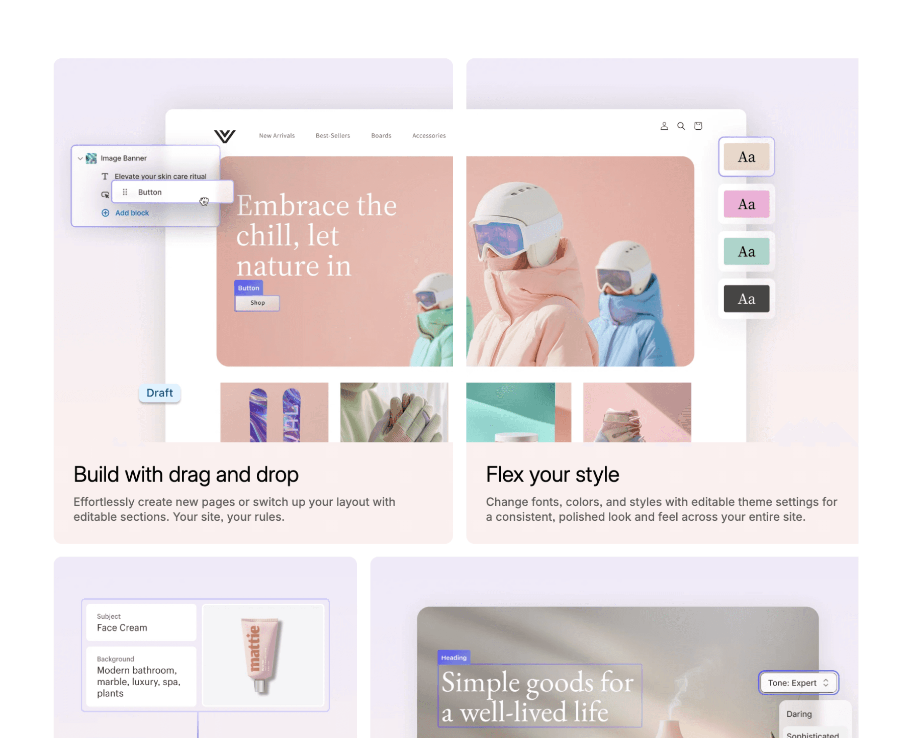 I partnered closely with the lead designer to support the page with visual direction and refinement. Rather than reworking layouts, my focus was on strengthening hierarchy, improving balance, and elevating the overall visual confidence — ensuring the experience felt intentional, cohesive, and unmistakably Shopify.